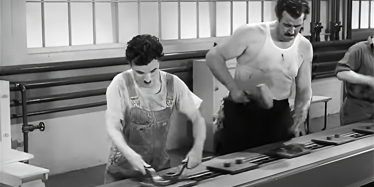 Immagine: da Tempi moderni, regia di Charlie Chaplin, 1936